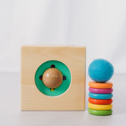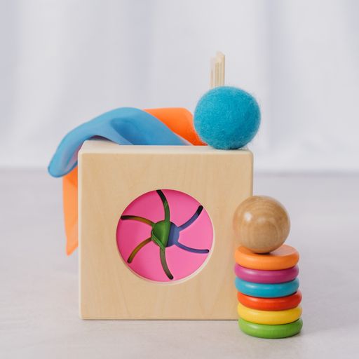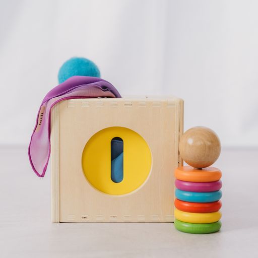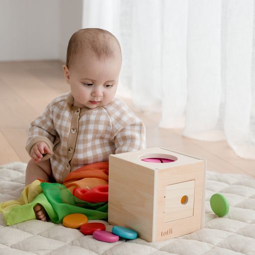 The Totli Box includes everything in one: from posting to sorting to imaginative play. Explore object permanence, play peekaboo, and discover how objects work together with three sides designed for posting, pushing, and pulling.
