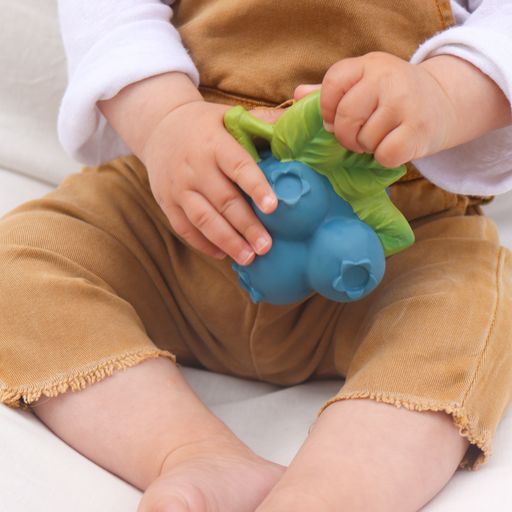 Jerry the Blueberry is a chewable baby toy for teething, bath time and sensory play. Little ones love its round & squishy shape to grasp and soothe teething gums. Its design with a hole in the middle makes it perfect to hang from a strap & take it everywhere you go!