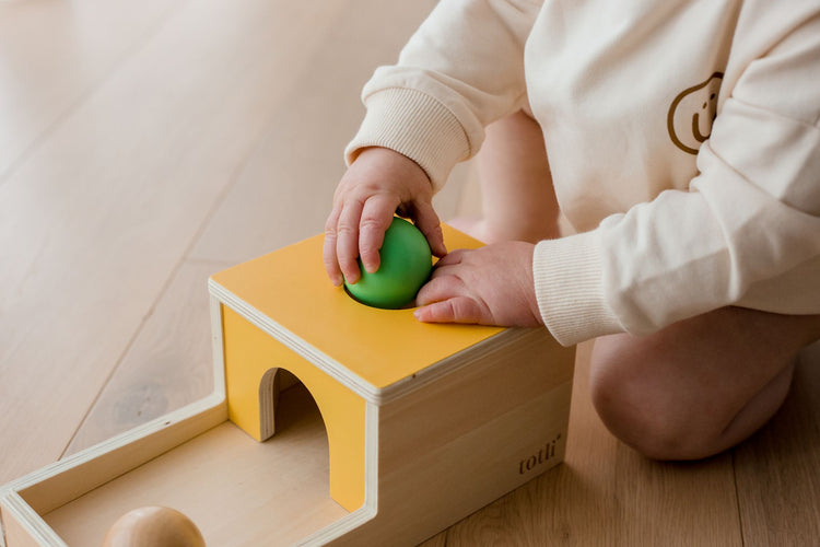 The Totli Ball Drop will help your child's gross motor skills grow as they learn that things can exist even when you can't see them. Perfect for learning about object permanence and strengthening visual tracking skills.
