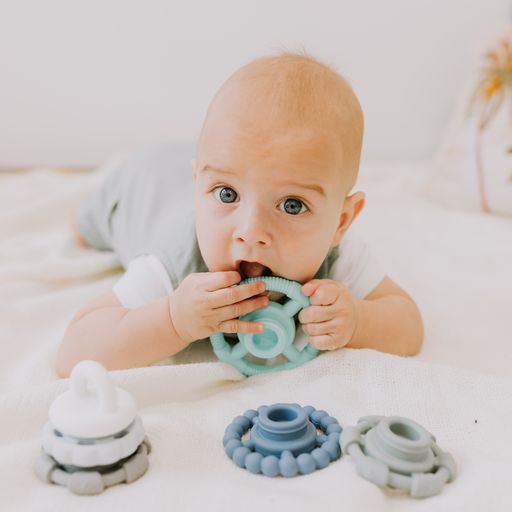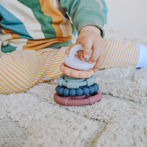 Babies love chewing on the soothing silicone rings and older children grow up practising their hand-eye coordination by stacking the rings, using creative thinking and problem solving skills to put the stacker back together.