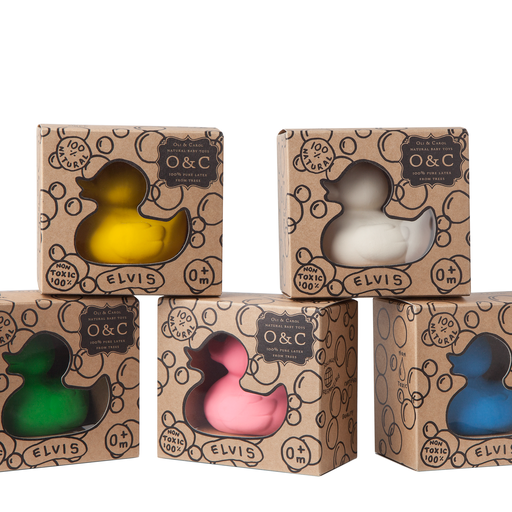 These classic memorable ducks will follow your child wherever they go. Splash around with our bright monochrome duckies and waddle with them everywhere you go! ELVIS THE DUCK is hand-crafted with no holes so when they’re floating about, no bacteria or mould is present! Find Elvis the Duck in other naturally dyed colours!